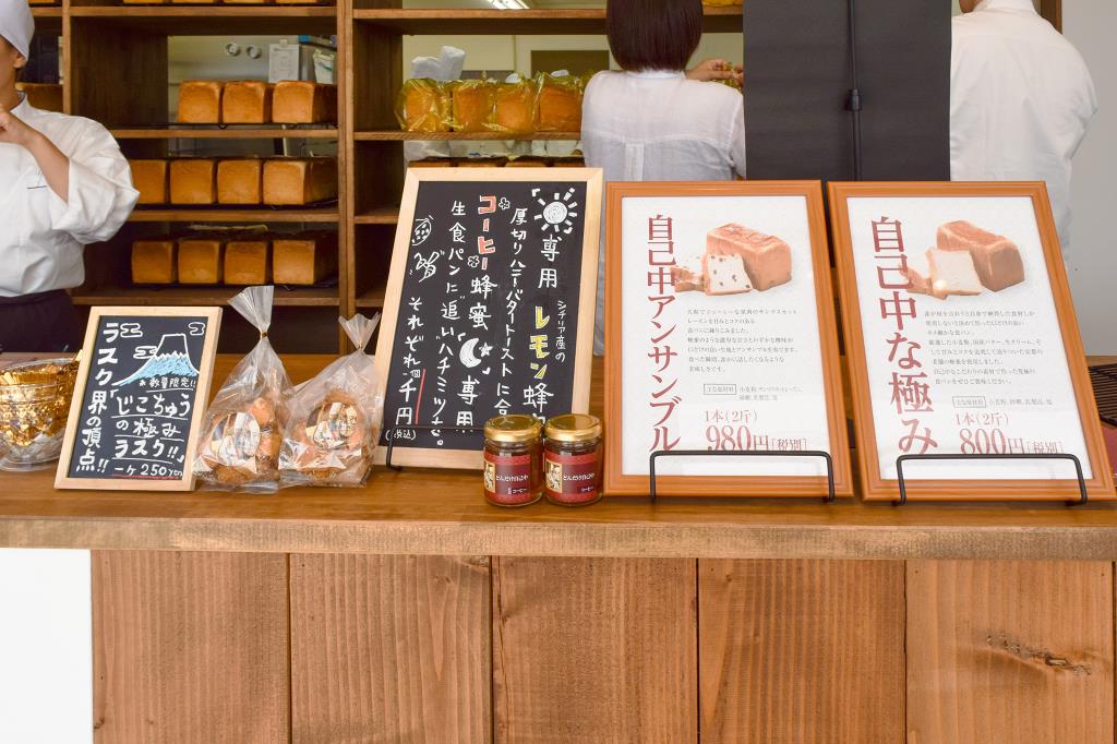 ・自己中な極み(プレーン)1本(2斤)864円 ・自己中アンサンブル(レーズン)1本(2斤)1,058円 ・じこちゅうの極みラスク 250円 ・レモン蜂蜜・コーヒー蜂蜜 各1,000円 ※税込 |