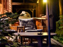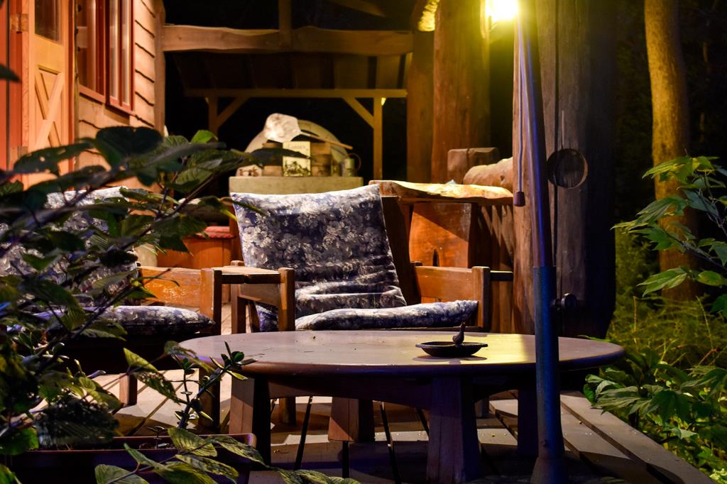 森の中にあるログハウス。