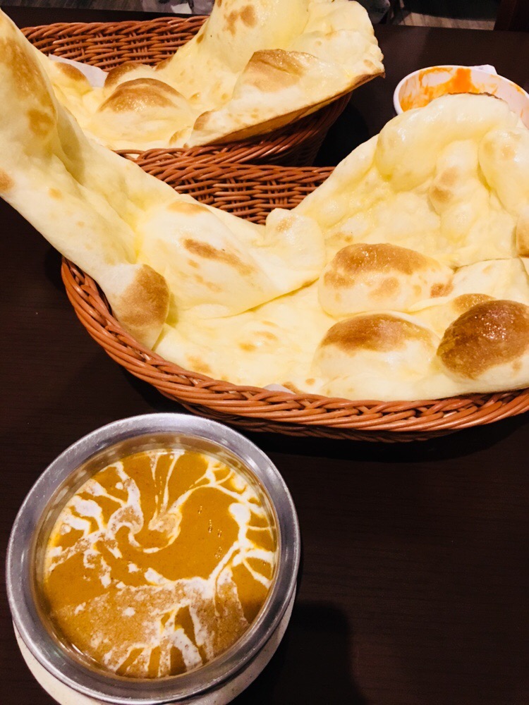ナンも甘みがあって、柔らかくもちもちで大好きです!カレーの種類も多く、辛さを選べるので、