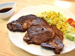 ぶた丼 550円~ 牛すじ丼 850円 国産サイコロステーキ重 2,500円(黒毛和牛A4ランク) ビーフシチュー 1,200円 ※スープ・漬物付き 全て税別 |