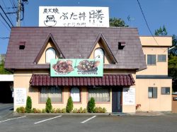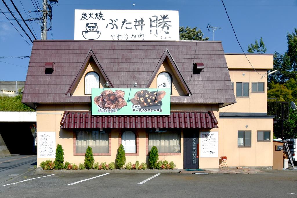 甲府市徳行にある「ぶた丼 勝」。定番のぶた丼は炭火でじっくり焼き、香ばしくて柔らかい。