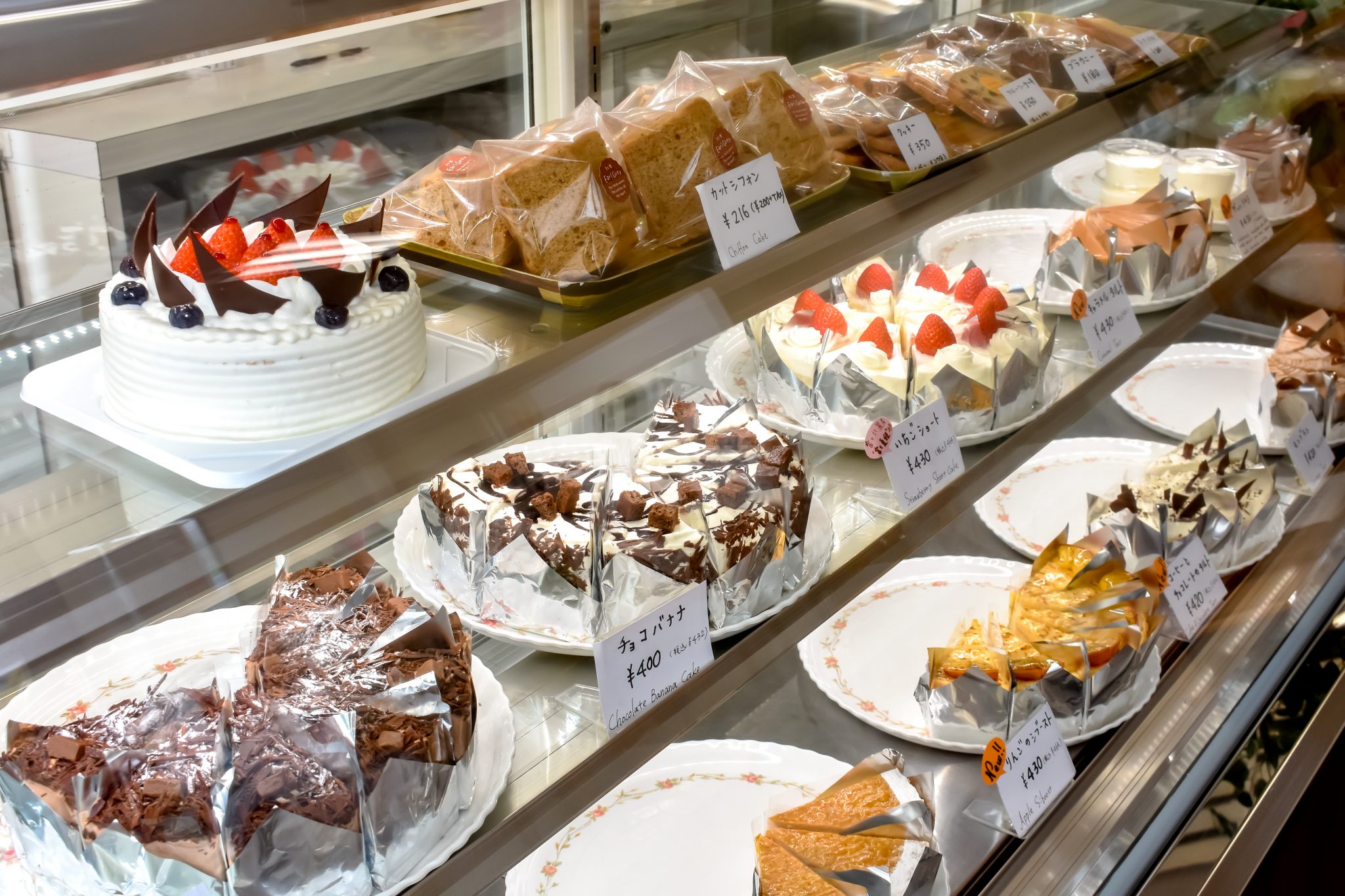 ショーケースにはカットケーキが並び、ホールケーキも種類が豊富で嬉しい。イラストケーキやフォトケーキの注文もお気軽に♡普段使いからちょっとした手土産・お祝い事にジョージワシントンのとびきりおいしいケーキはいかが?