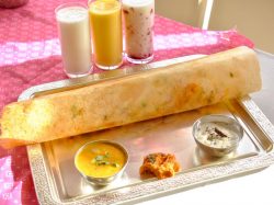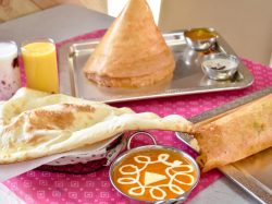 どれを食べても満足できるクオリティーだが、特にドサセットはオススメ。ちぎってルーに付けて食べるスタイルでパリパリの食感と米粉本来の美味しさがクセになる逸品。