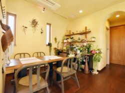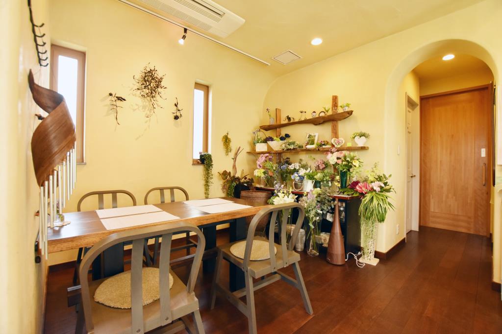 アーティフィシャルフラワーで装飾された美しい店内は、オリジナルカレーやランチプレートをいただける癒しの空間。