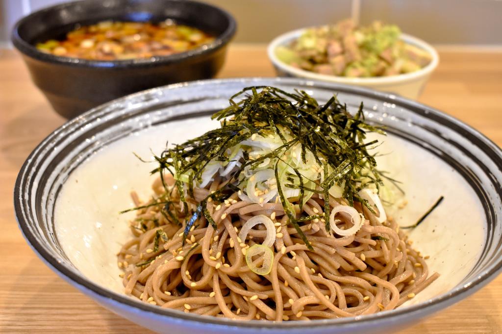 美味しそうな肉そばに惹かれて行ってみました。 少し寒かったけど、『No. 1』につられ、冷やしバジル蕎麦を注文… 初...