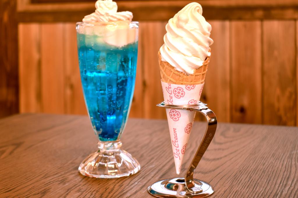 ソフトクリームの看板が目印の「ラウンジ 紅寿」。