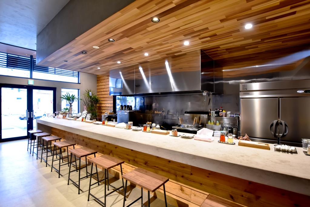 2019年12月3日に甲斐市にオープン!ラーメン屋さんとは思えない、カウンターだけのオープンキッチンという開放感ある造り。