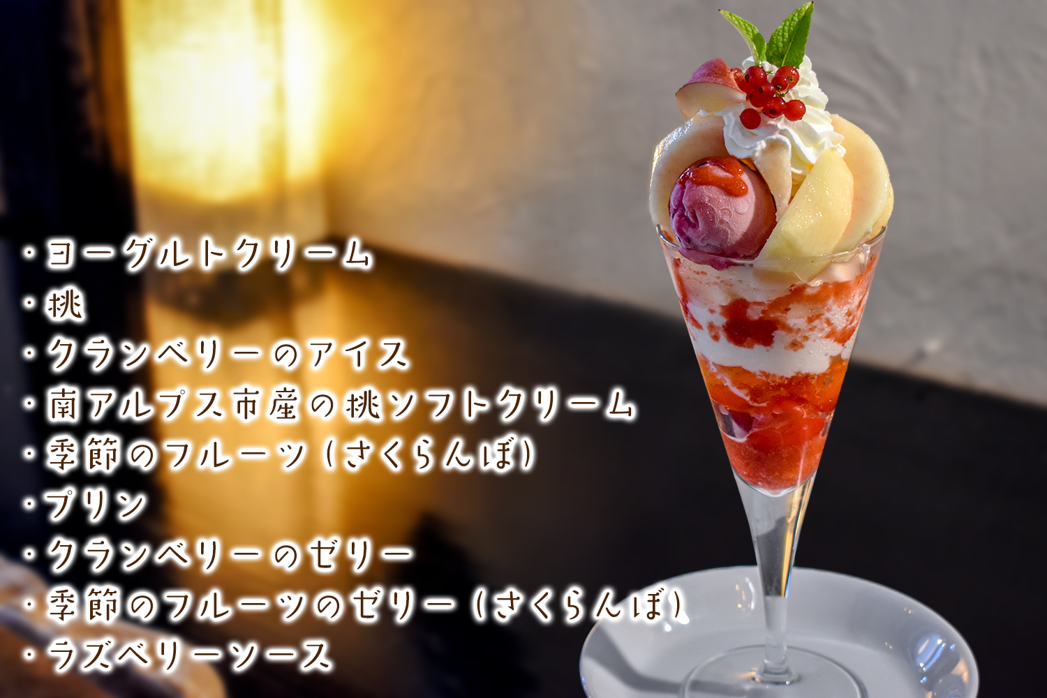 ・フルーツパフェ各種 1,320円~ ・アップルカスタードパリス 432円 ※全て税込 |