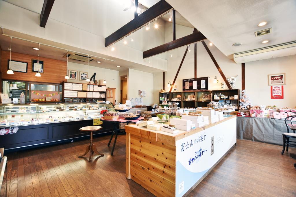 カフェスペースがあり、富士の名水で作った寒天と香り豊かな和糖のあんみつやワッフル、名物のカレーなどお食事も楽しめる。