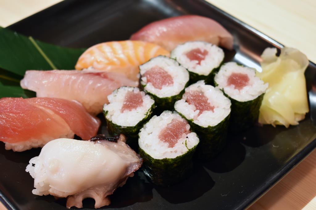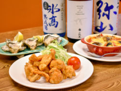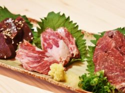 ・馬刺し盛り合わせ 980円 ・寿司1貫 100円~ ・エビとキノコのアヒージョ 580円 ※すべて税抜き |