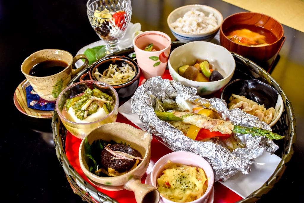 野菜中心で旬の食材をふんだんに使った体が喜ぶやさしい味わい。ごはんとみそ汁、デザートにコーヒーまで付いて大満足!心のこもった手作り盛り籠ランチでゆったりと特別なひとときを過ごしてみては?