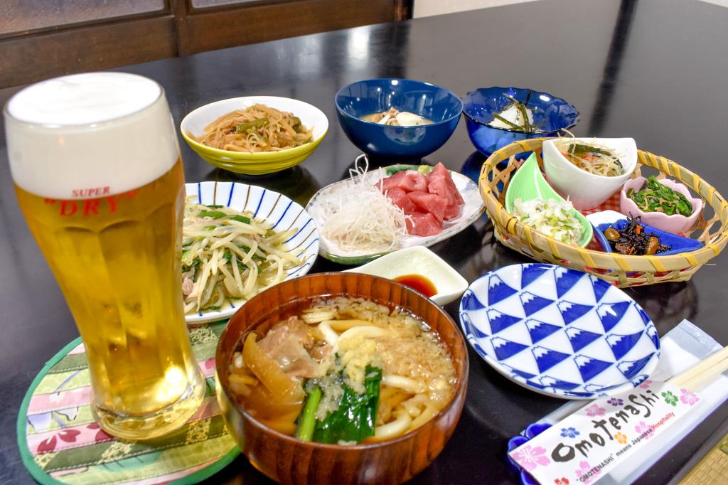 富士吉田市の「古民家やまと.」のランチは8種類の小鉢が並ぶおまかせ盛り籠ランチ。