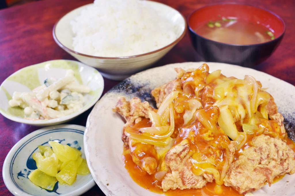 都留市役所近くにある、ボリューミーかつ美味しい食事で体も心も満たされる人気の大衆食堂。
