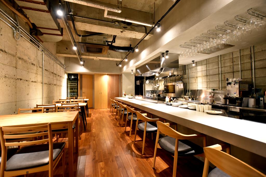 鉄板焼きをカジュアルに…というコンセプトのもと、若い人でも足を運びやすいゆったりとした時間が流れる。