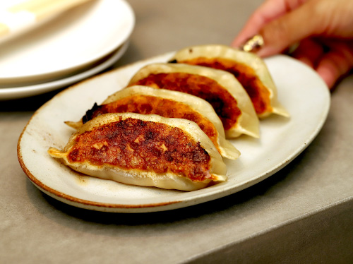 手切りした具材を使った大きめの餃子はしっかりと具材の食感を残し、他では味わえない逸品!