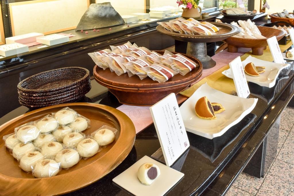 ・はまなし(6個入り~)1,080円~ ・富士山羊羹 1,400円 ・富嶽菓撰(6個入り~)1,400円~ ・かねたまる餅(12個入り)1,100円 ・五行上生(上生菓子)1,400円 ※全て税込み |