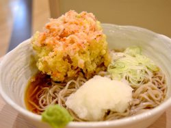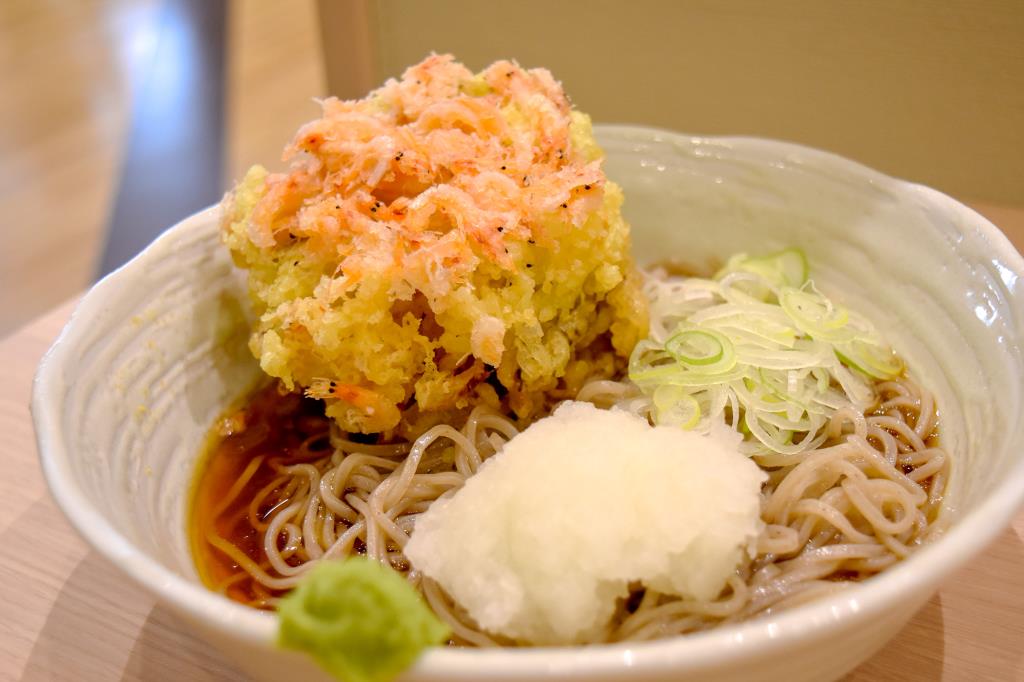 ソバの実の殻をむいた、中心の部分だけを使った白っぽい麺で、爽やかなのど越しが特徴。揚げたてのかき揚げや鶏天がのった蕎麦などメニューが豊富で、全メニューうどんにも変更OK!ミニ丼が付いたセットメニューも人気♪