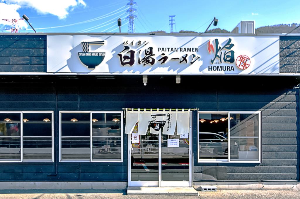 西桂町の国道沿いにある白湯ラーメン専門店「焔」。
