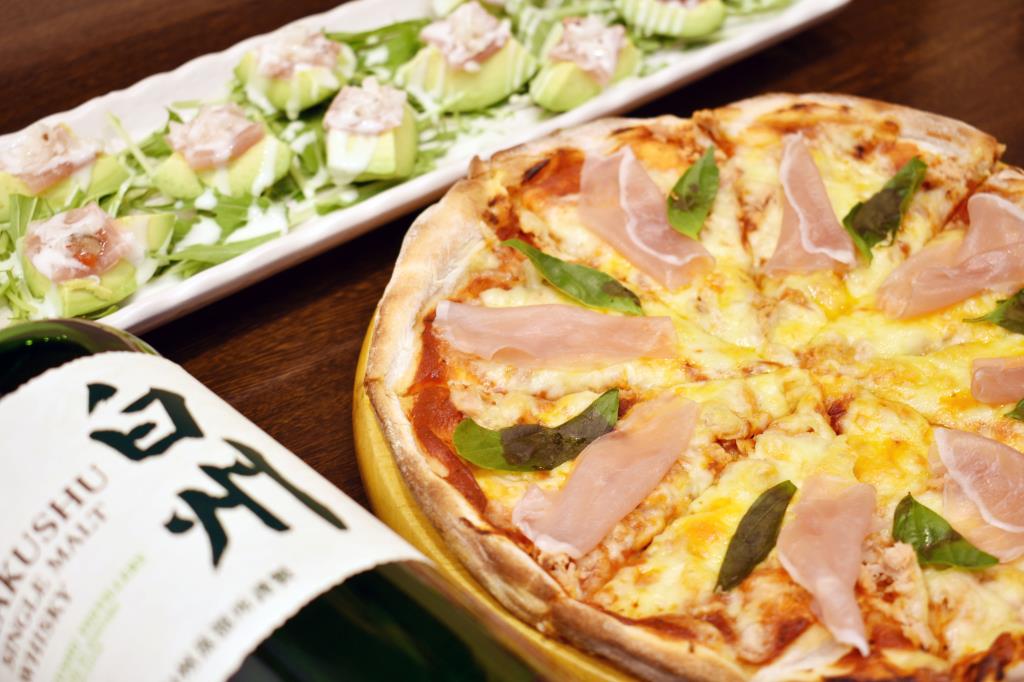 ・ハーフヤードビール 1,200円 ・アボカドと生ハムのマリネ 670円 ・ピザ各種 800円~ |