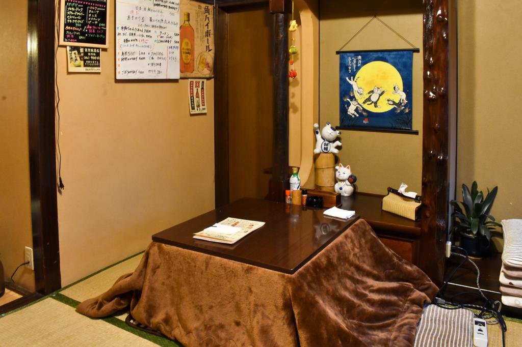 冬は座敷にこたつが設置される。こたつで温まりながらおいしいお酒と焼き鳥を堪能してみては。