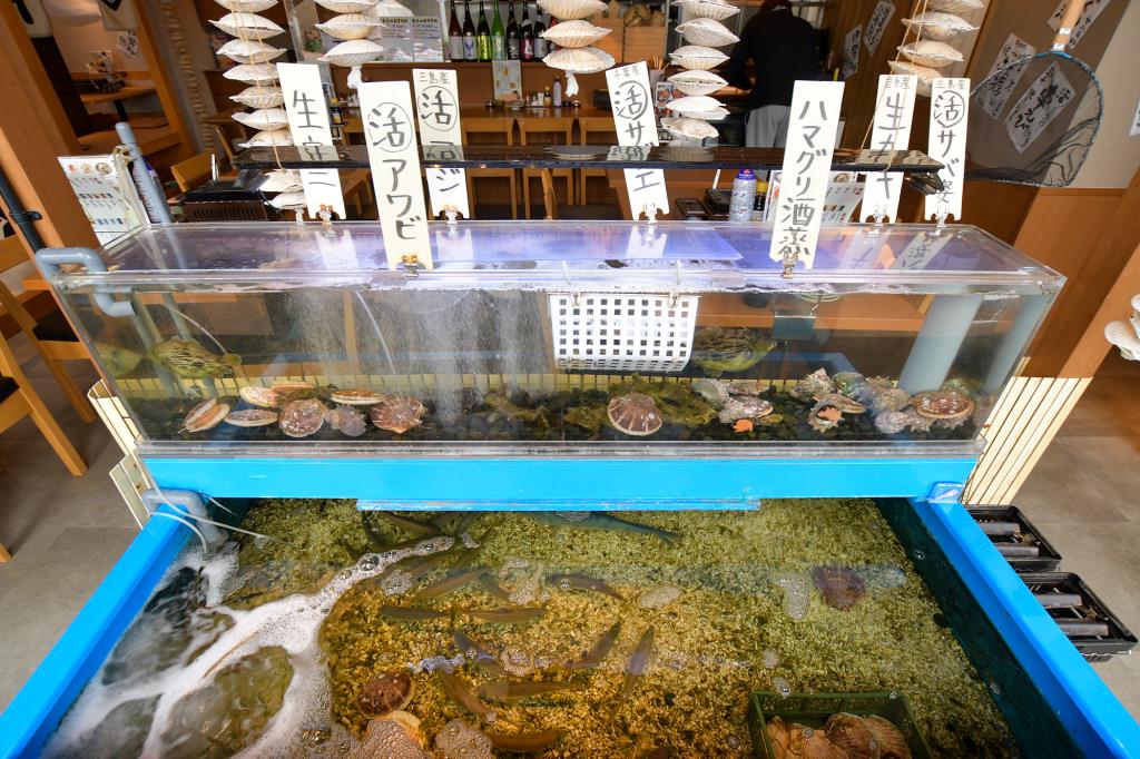 店内にある生簀から直接取出した鮮魚をその場で捌いてくれる。