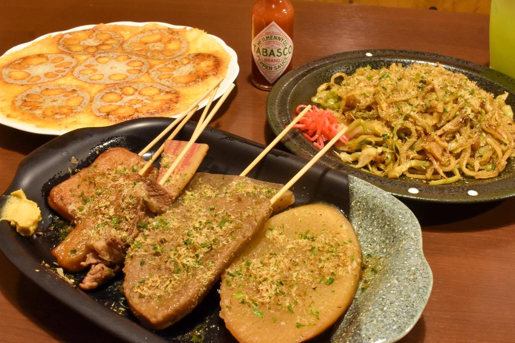 富士河口湖町の「赤井」は富士宮焼きそばや静岡おでん、とりもつ煮などのB級グルメを中心としたおつまみを楽しめる居酒屋。