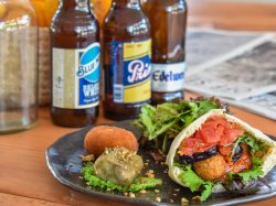 新鮮な野菜をたっぷり使った中東のサンドウィッチ「ファラフェルサンド」がオススメ。