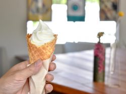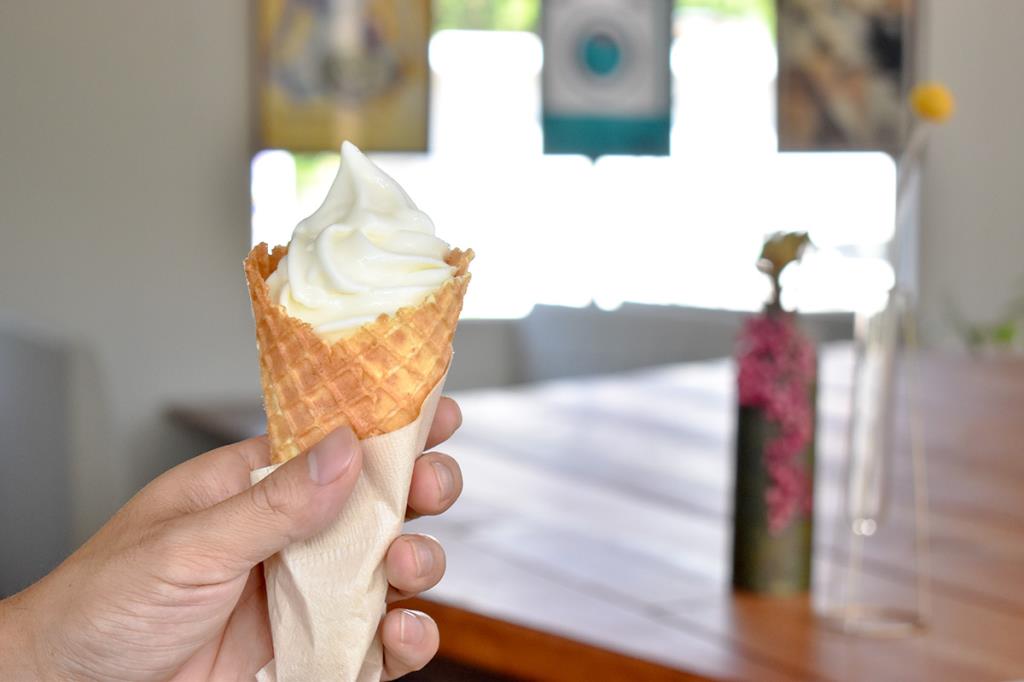 店外には大きな黒板や縄跳びがあり自由に遊べる♪授乳室やおむつ交換台も用意してあり子連れでも気兼ねなく過ごせる。こだわりのIRU SOFTは空気を多く含み、濃厚なのに口溶けがよくあっさりでこちらもオススメ!