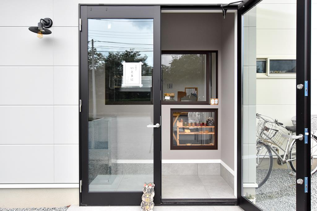 白いお家の一角がお店になったカップケーキ専門店『小菓子 いとまに』。