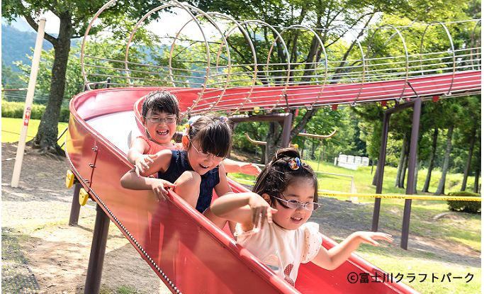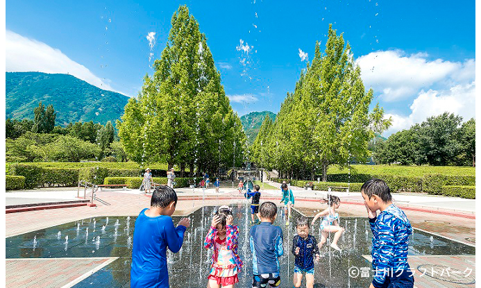 | 設備 | ●芝生広場 ●砦遊具広場 ●巨大迷路 ●大噴水 ●ドッグラン(利用登録制) ●バーベキュー場(CATCH UP BBQ場) ●カヌー場 ●富士川・切り絵の森美術館 ●道の駅みのぶ 富士川センター ●バラ園 ●レストラン スヴニール |