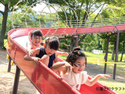 東京ドーム約11個分の広さの園内には、芝生広場、砦遊具広場、バーベキュー場などがある。