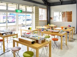 河口湖クラフトパークは初心者でも楽しく簡単にさまざまなクラフトを体験することができる。砂をガラスに吹き付けてオリジナル模様を作る「サンドブラスト」やオリジナルの「キャンドル制作」など、河口湖の思い出作りにぴったりの施設となっている。