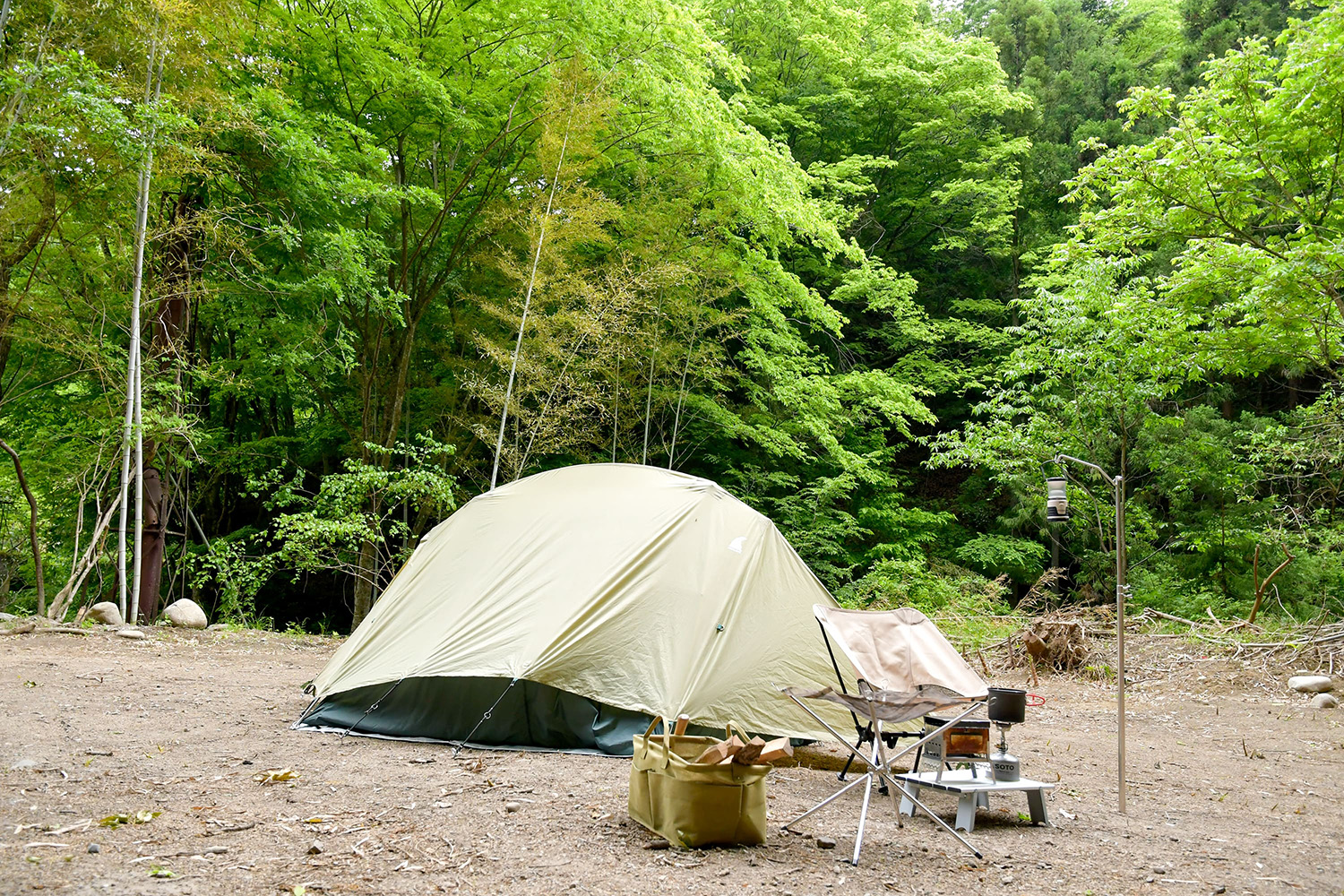 富士川町にある「おかえりキャンプ村」は田舎に帰ってきたような安心とプライベート感ある小規模フリーサイト。