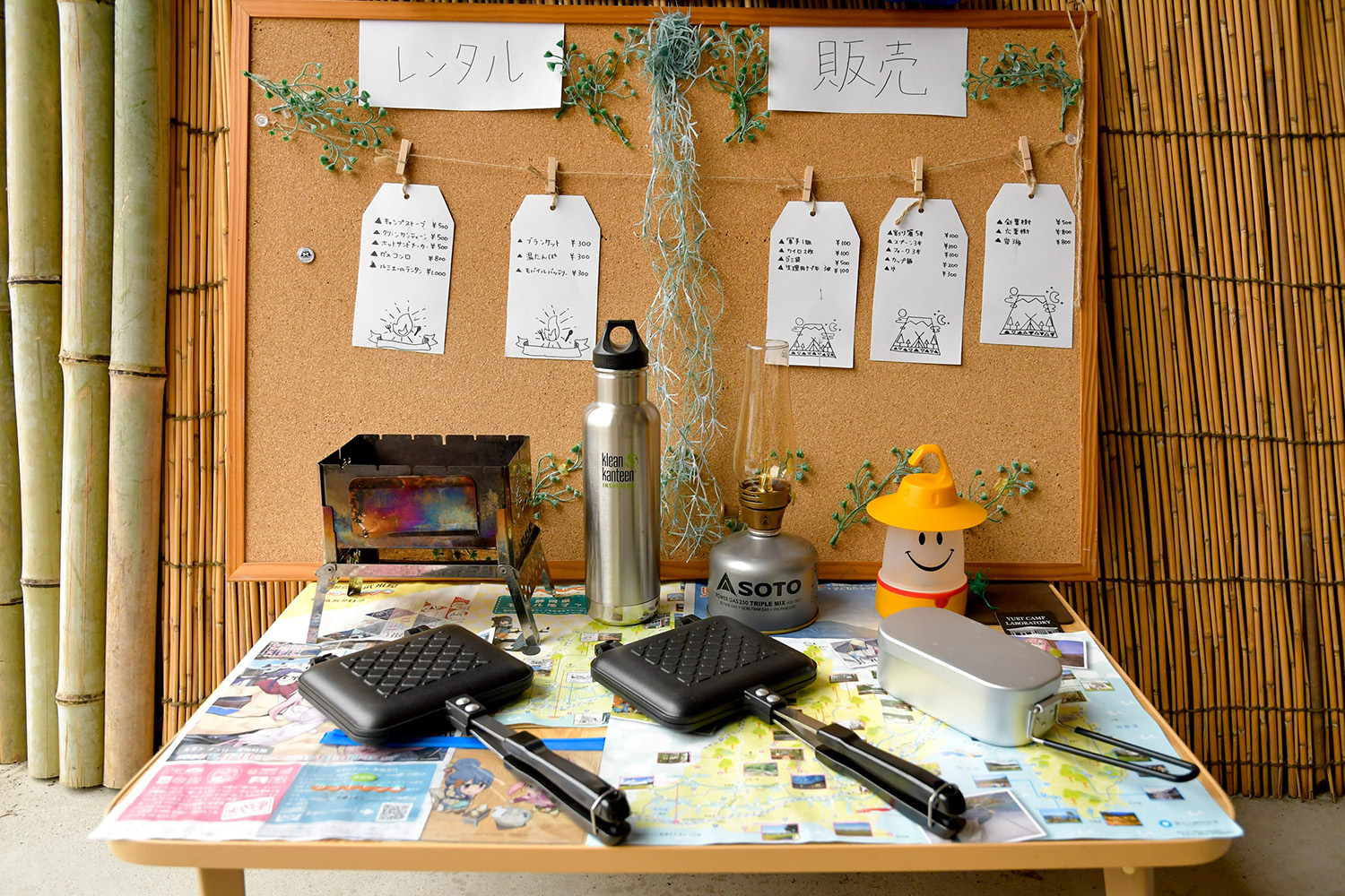 「キャンプを初めてみたい」「道具はどんなモノが必要?」などの初心者に応えるべく、キャンプ道具一式をレンタル出来るプランもあるので、初めてでも流行りのロースタイルキャンプが楽しめる。