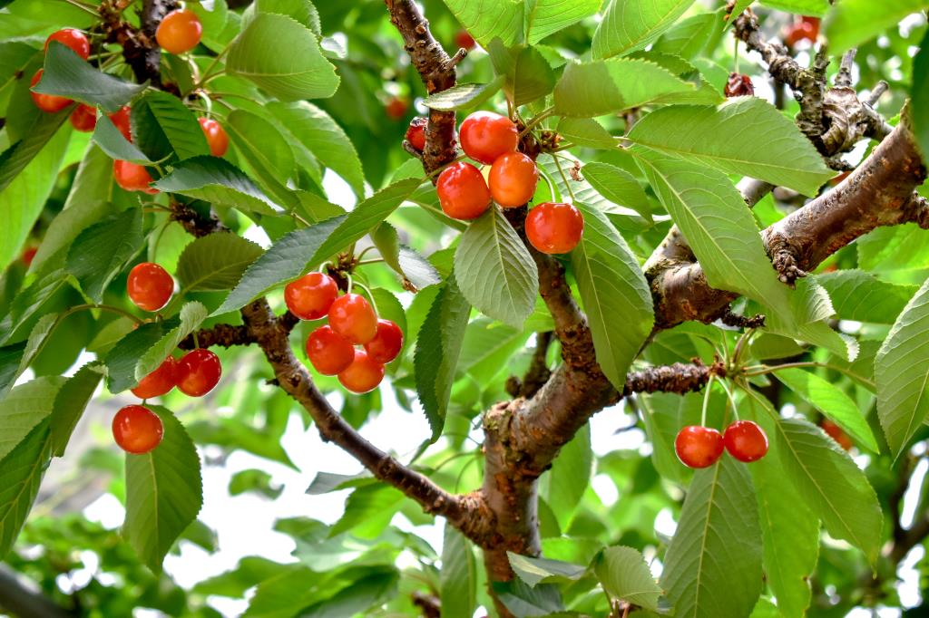 さくらんぼは園内に10種類以上。つやつやと輝く真っ赤なさくらんぼの食べ比べを楽しんでほしい。