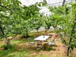 | 利用料金 | <さくらんぼ狩り 40分食べ放題(5月末~6月末)> ●小学生以上...2,200円 ●未就学児...1,100円 ※メール予約の方のみ50分食べ放題 <ぶどう狩り 量り売り> 8月末~9月末 ●ピオーネ1kg...1,300円~ ●シャインマスカット1kg...1500円~ ※全て税込み |