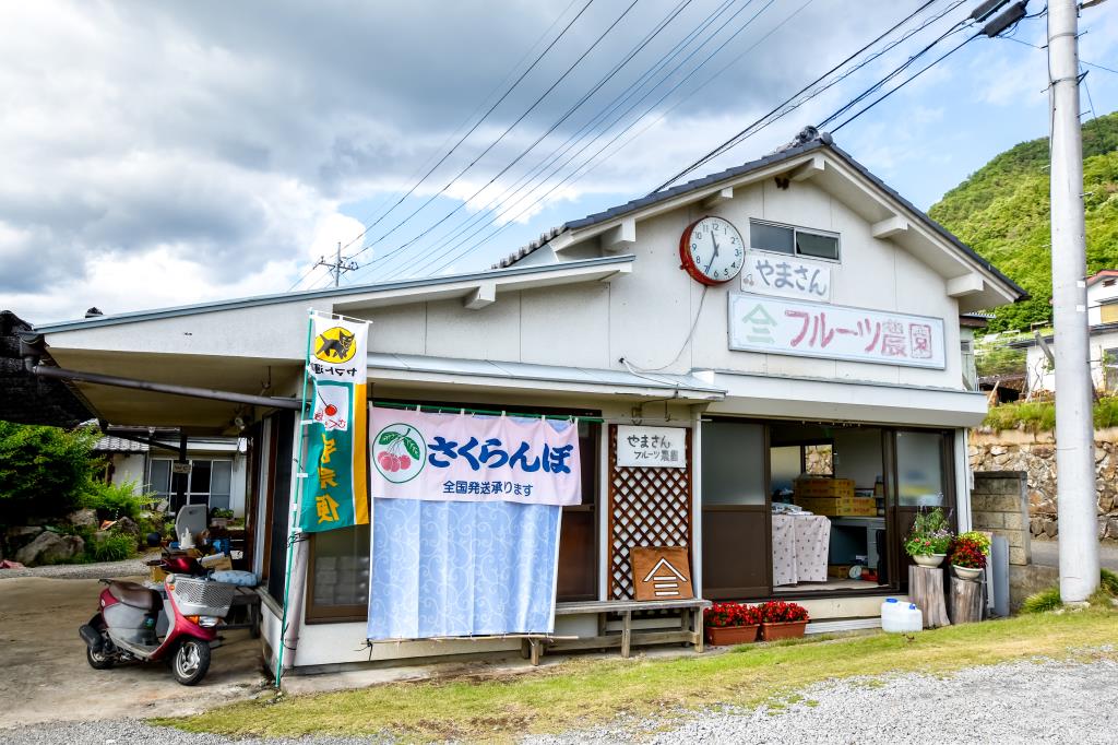 さくらんぼから始まり、プラム、巨峰、ピオーネ、シャインマスカット、キウイフルーツ、ころ柿など年中通して様々なフルーツをお届けしている、やまさんフルーツ農園。