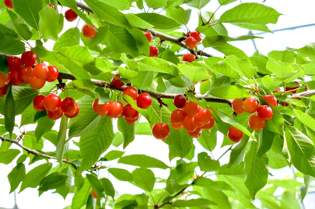 さくらんぼ狩りでは、佐藤錦・ナポレオン・高砂など数種類を味わうことができる。