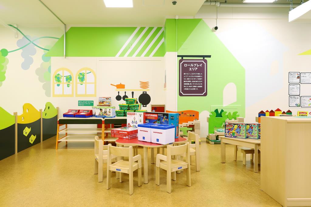 全身を動かして遊べるアクティブエリア、おままごとやごっこ遊びで想像力や創造性を育むロールプレイエリア、0歳から3歳未満の赤ちゃんが安全に遊べるベビーエリアの3つに分かれる。