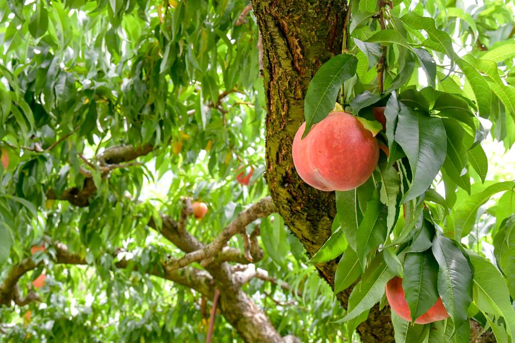 12月の「いちご」に始まり、6月「さくらんぼ」、7月~8月「桃」、8月~10月「ぶどう」と通年でフルーツ狩りを楽しめる。
