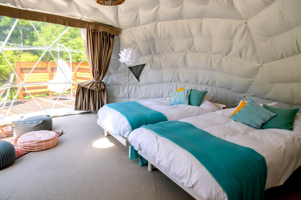 | 広さ | 2ベッド4名ドーム×3テント、4ベッド5名×4テント |