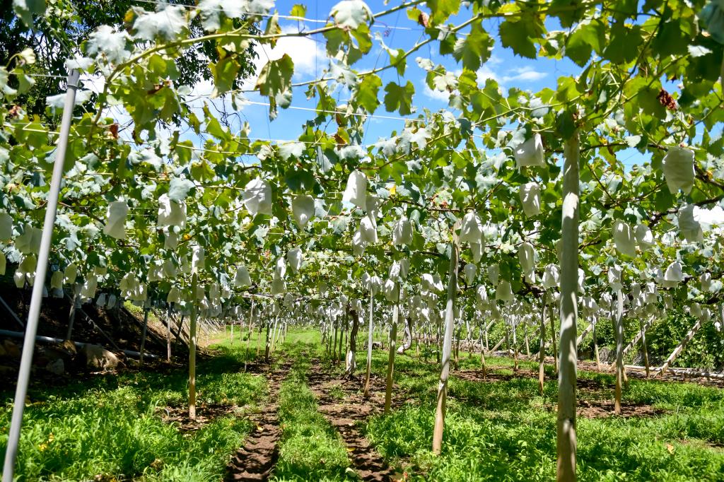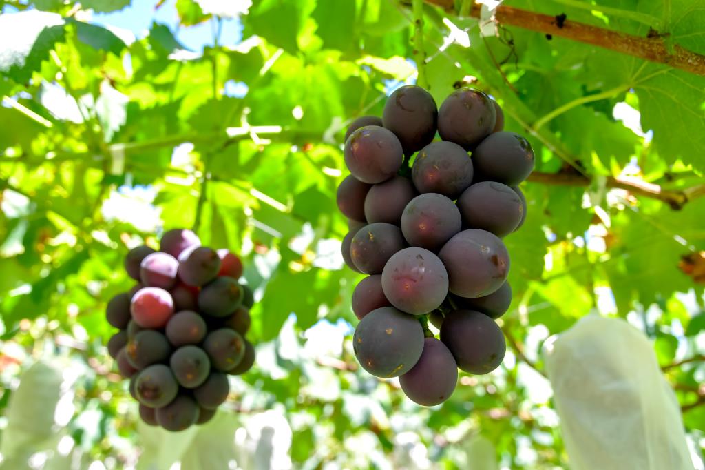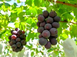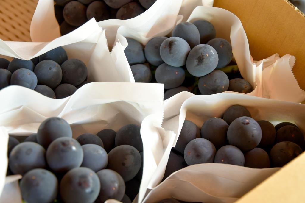山梨市牧丘町は「巨峰の丘」とも呼ばれるほど巨峰が有名な地域。その標高から寒暖差が大きく、日当たりと水はけの良い土地が重なり熟成された甘みの強い巨峰が育つ。