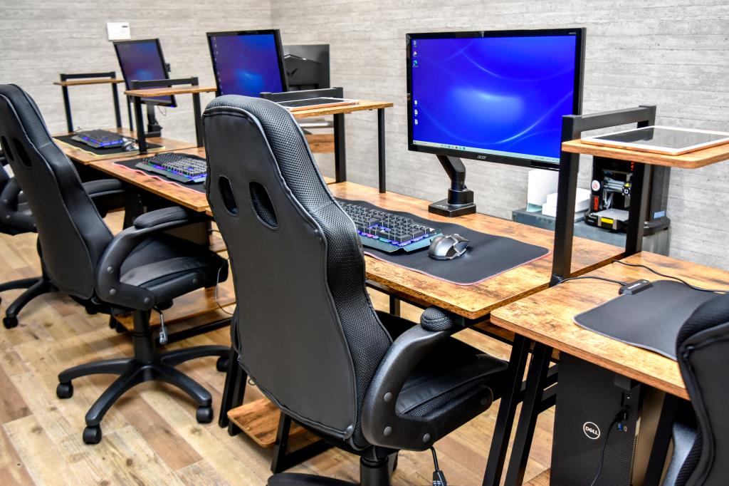 2020年度に小学校で必修科目となったプログラミング教育。プログラミング技術を動画教材を使用して、楽しく学習することができる。1人につきプログラミングで操作するパソコンと動画を見る端末を用意しているのが嬉しい。
