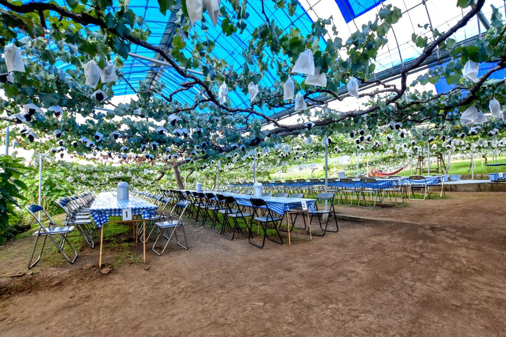 巨峰の名産地である山梨市牧丘町にあり、巨峰、グランドローズ、シャインマスカットのぶどう狩りを予約なしでできる。