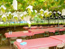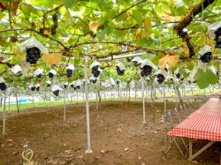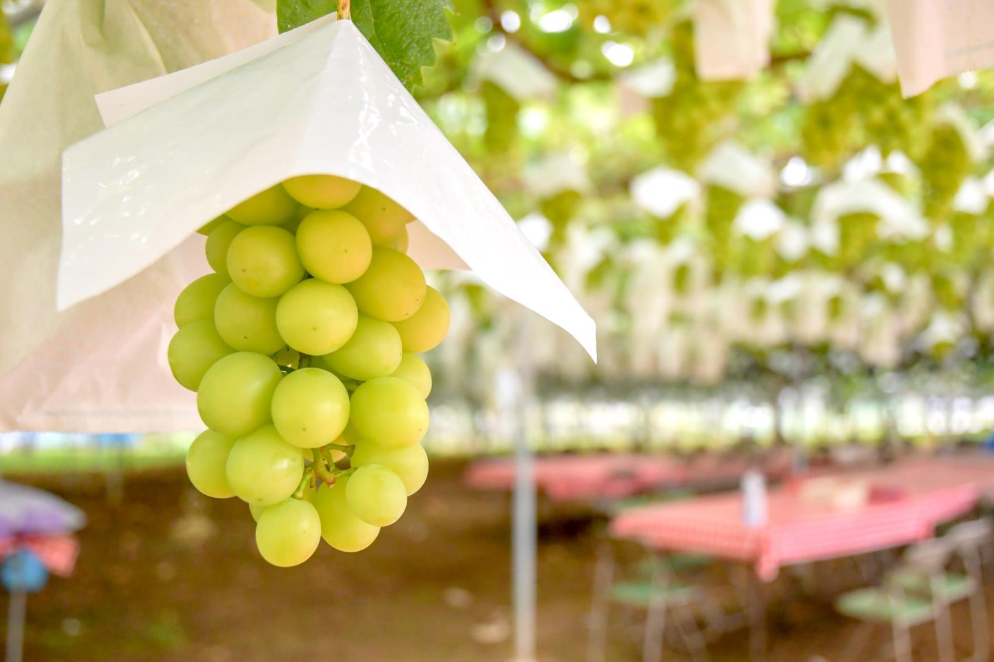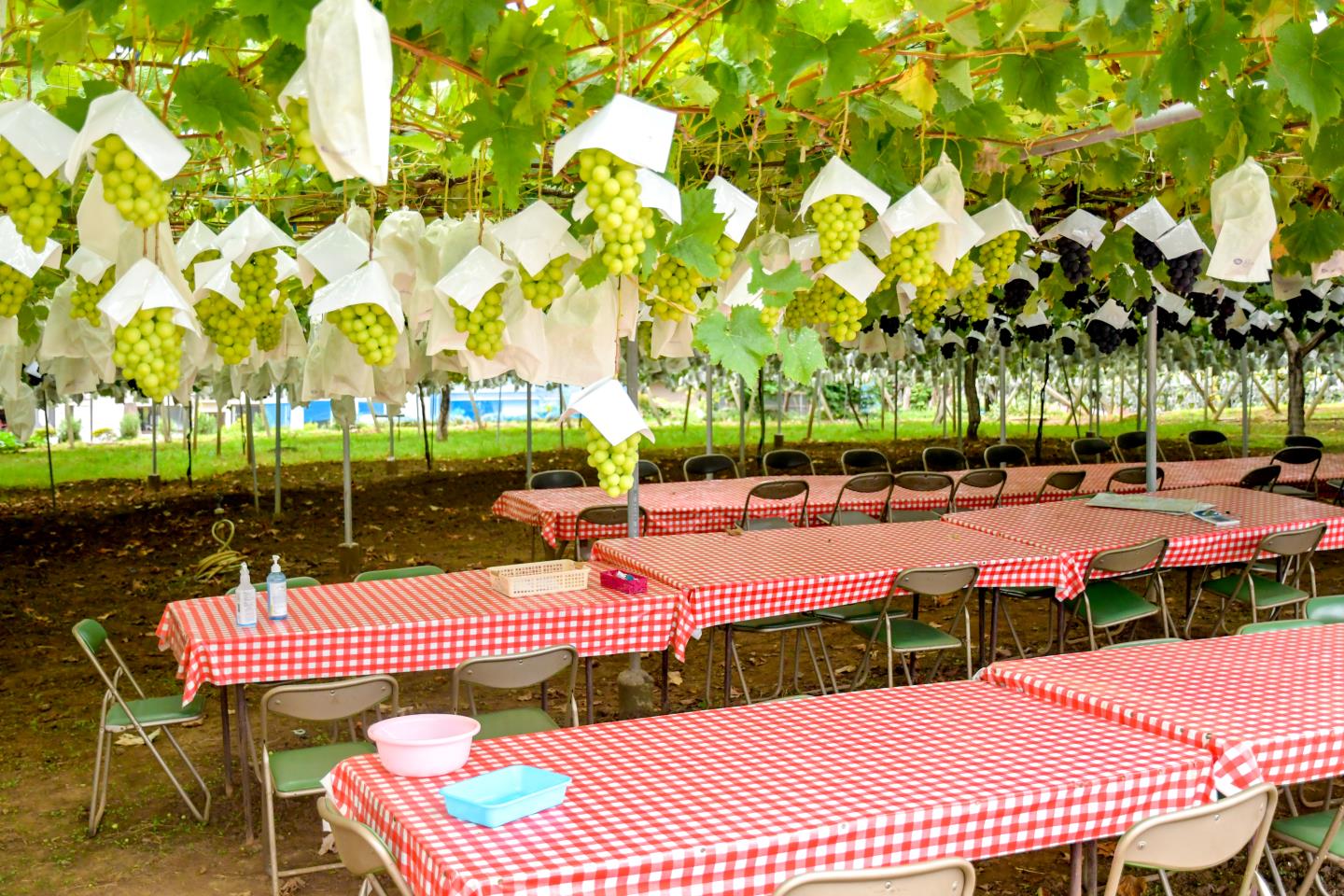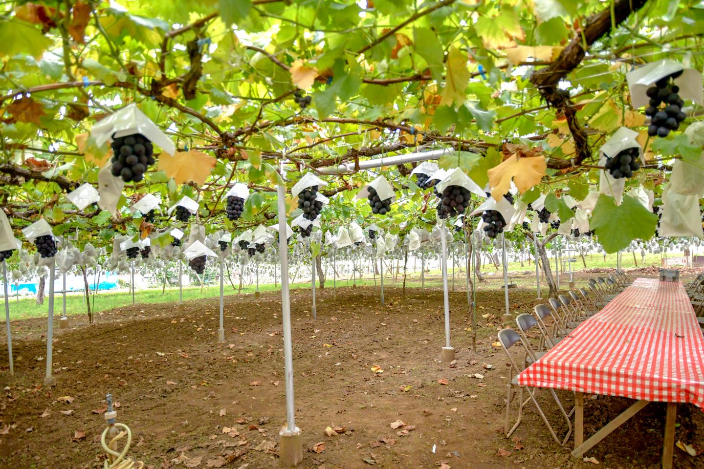 ぶどう棚の下で食べる巨峰を「雨宮観光農園」で楽しんで欲しい。