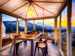 2019年初夏にオープンしたグランピング施設。目の前には雄大な富士山、彼方には南アルプスが望…