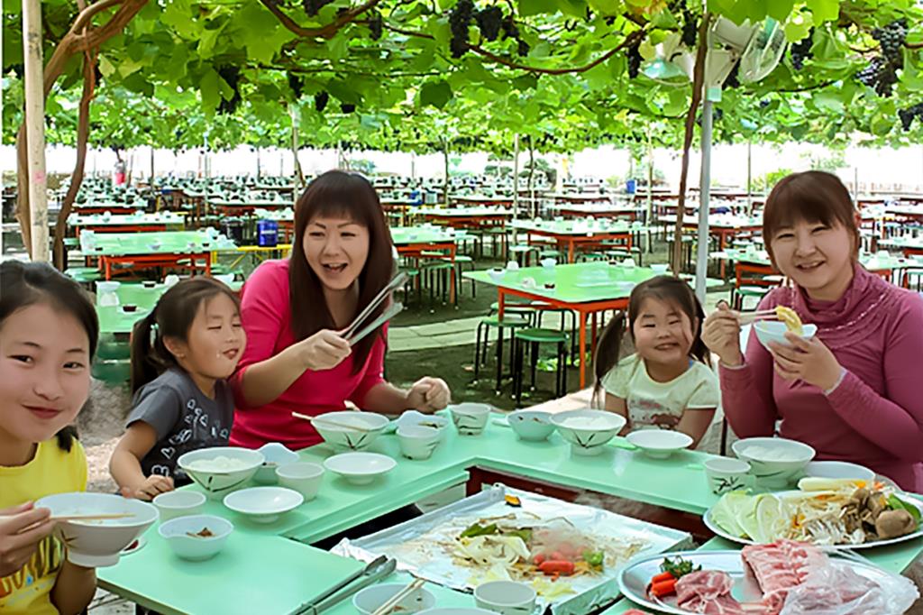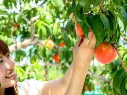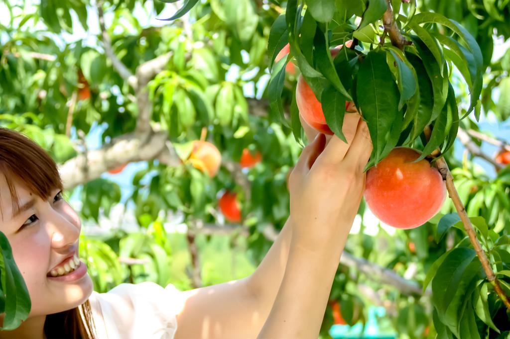 6月下旬~8月中旬は桃狩り、7月下旬~11月中旬はぶどう狩りが時間無制限&食べ放題!3月下旬~4月上旬は桃の花・菜の花を桃源郷ならではのコントラストで見ることができる。