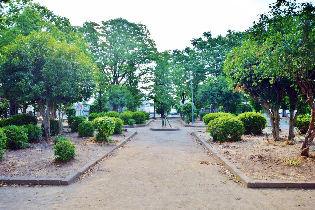 ブランコ・すべり台といった遊具やベンチなどがあり、園内は木々に囲まれているため夏は木陰で休憩することもできる。