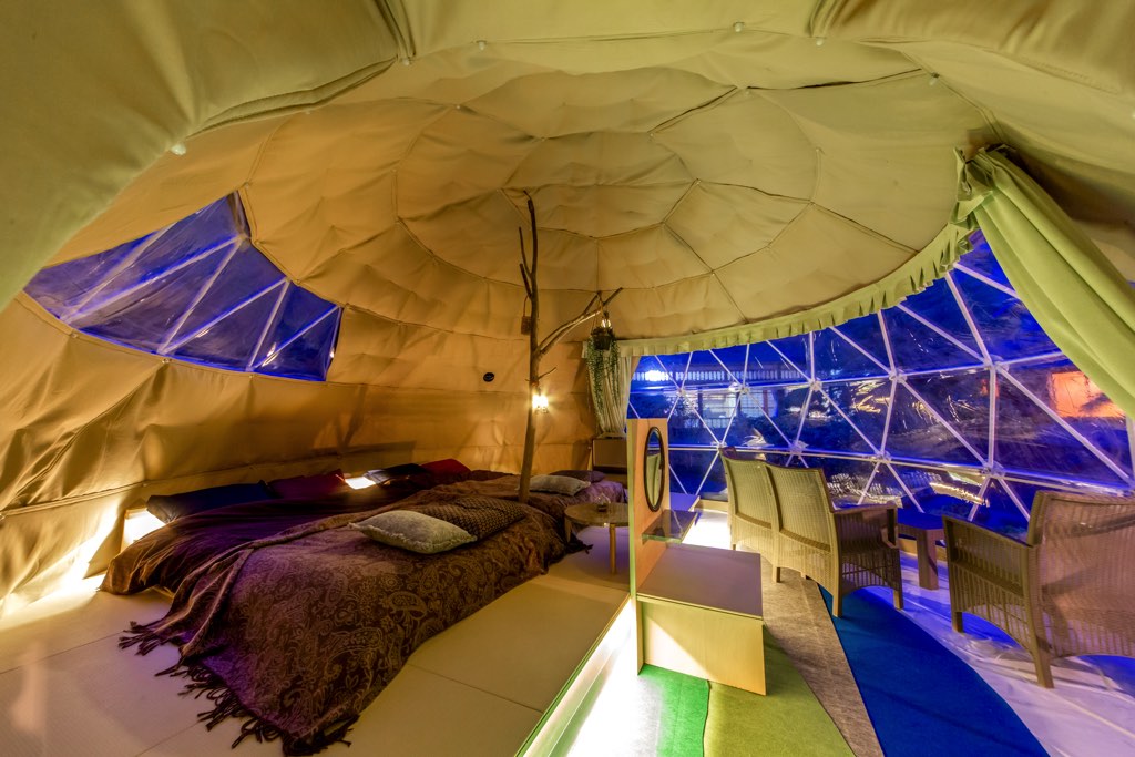 満天の星空と清流の音色に包まれる身延町下部ホテルのグランピングは「和×グランピング」がテーマ。