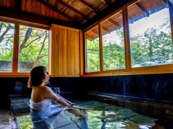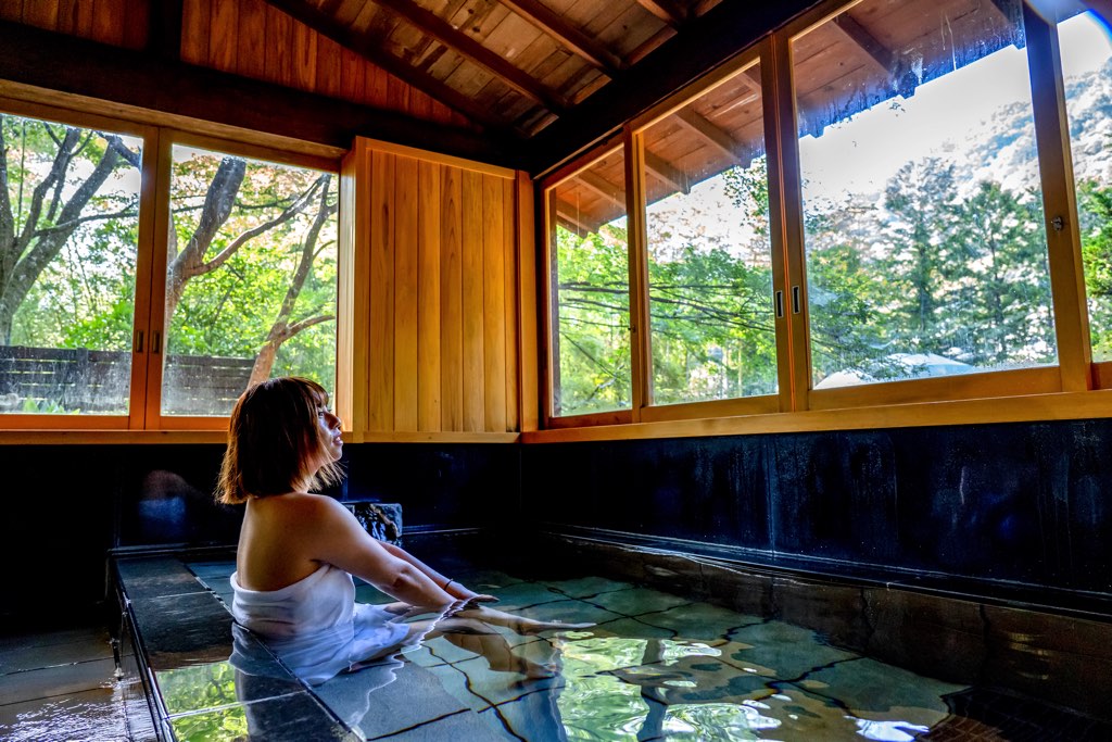 広く高さのあるドーム内はゆっくりとした時間が流れ、ドームの他、名優石原裕次郎も利用した特別室や専用の半露天風呂も利用できる。
